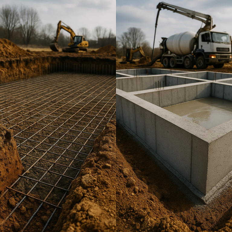 Zemine uygun temel açılır, gerekli güçlendirme işlemleri yapılır.